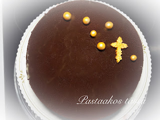 Kakku jäähdytetään ja jos pinnan haluaa päällystää suklaasprayllä, kakku jäädytetään.